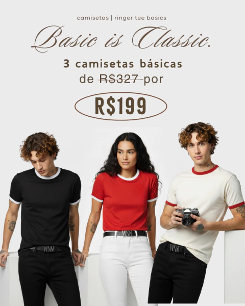 Camiseta Ringer Tee Vintage BASIC - Pret...